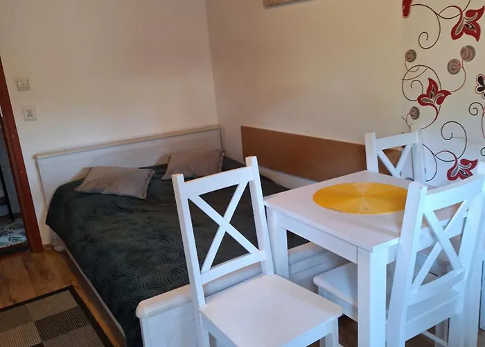 Domek Letniskowy 3 Os Pod Debem别墅拥有1间卧室,步行不到9分钟就能到Kościół pw. Św. Piotra Apostoła. 该别墅为客人提供小厨房以及带卫星频道平板电视 和电视的房间.